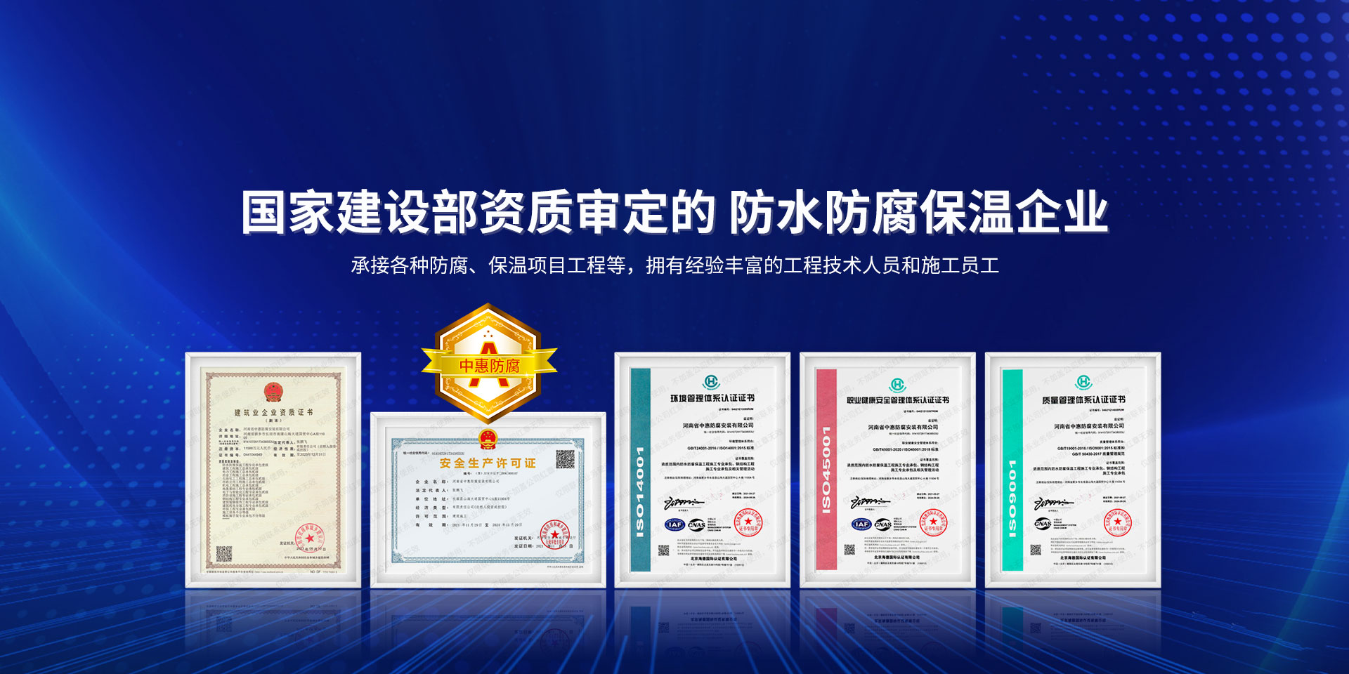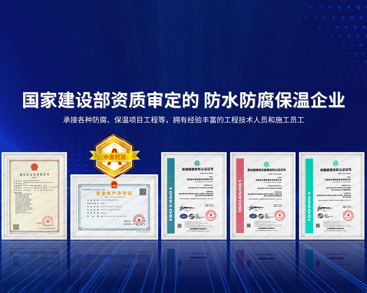 公司經營范圍:防水防腐保溫工程;消防設施工程;建筑裝修裝飾工程;建筑機電安裝工程;電力工程;建筑工程;石油化工工程;工業清洗工程;油罐清洗工程;鋼結構工程;環保工程;模板腳手架工程;電纜防火封堵、防污閃噴涂、外墻外保溫工程;各類施工勞務作業;設備維修、船舶鉚焊、涂裝;電力工程材料、建材、防水材料、防火材料、防腐保溫材料銷售,并相繼通過了GB/T19001-2008idtISO9001:2008GB/T50430-2007質量管理體系認證證書。GB/T24001-2004idtISO14001:2004環境管理體系認證證書。GB/T28001-2011idtOHSAS18001:2007職業健康安全管理體系認證證書。公司是中國防腐蝕于防護協會、中國施工企業管理協會、電力協會和中國鋼結構防水協會會員單位。 公司的經營業務涵蓋了石油、化工、電力、冶金、煤炭、船舶、國防、燃氣、水利、環保、交通運輸、航空及國防軍工和輕紡市政等行業的防腐保溫絕熱設備。鋼結構安裝、防火、防水、金屬噴鍍、聚脲噴繪、陰極保護、防滲透堵漏、玻璃鋼及各種磚版材料襯里、橡膠襯里、煙氣硫和耐酸溶劑腐蝕等工程施工。公司連續十年榮獲“省市先進施工企業”“安全生產先進單位”“重合同,守信用企業”和“AA***資質企業”的稱號。2000年被命名為市級文明單位,2002年被國家工商行政管理局命名為“重合同,守信用的企業”、被中國工業防腐蝕技術協會命名為“防腐蝕企業,能源節約及環境保護領域有豐富的經驗和***的業績。工程一次交驗合格率100%。其中攀枝花鋼鐵公司煉鐵廠四號高爐及熱風爐防腐工程、上海寶鋼公司煤氣柜防腐工程、撫順石油一廠裝置防腐項目、齊魯石化公司稀烴廠高塔防腐工程、吉林化學工業公司煉油廠油罐防腐工程、天津石化熱電廠六號爐頂棚聯絡管保溫工程、大慶油田(太倉)力神泵業工程、中國化學工程第十一建設工程、中原油田勘探局工程、中國石化銷售有限公司華北分部、魯皖輸油管道工程、貴州開磷息烽合成氨工程、陜西黃陵煤化工程、中國石油天然氣西部管道塔里木輸油工程、邯鋼集團邯寶鋼鐵公司煉鐵工程、德州供電工程、吉寶(南通)船廠工程,偃師華潤熱力工程、鄭州熱力總公司。 河南省中惠防腐安裝有限公司愿以豐富的施工經驗,***的技術,***的設備,***的管理,***的服務,竭誠為國內外廣大的用戶提供***滿意、******的工程作品。 我公司愿與國內外同仁一道,團結協作,共同推進防腐蝕行業發展! 公司地址:河南省長垣縣建設路北段360號 固定電話:0373-8866488 郵編:453400 網址:http://www_zhff_com_cn.hefeidingfu.com